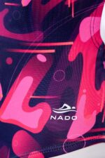 Su estampado combina tonos fucsia, rosa y azul oscuro con formas abstractas que evocan fuerza, dinamismo y mucha actitud. Un diseño atrevido que te acompaña con energía dentro y fuera del agua.